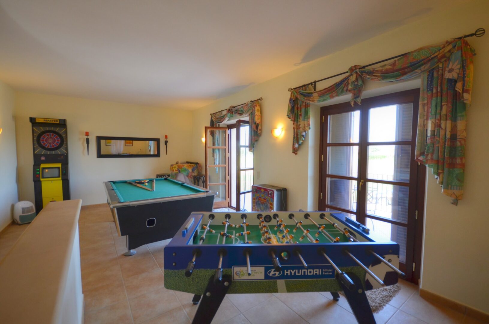 Auf der ersten Etage gibt es zwei Flügel mit identischer Aufteilung, in denen sich jeweils 2 Schlafzimmer, 1 Bad und eine Terrasse mit Blick bis zum Meer befinden. Es gibt auch ein großes Wohnzimmer - Spielzimmer mit Billard mit einer Terrasse mit herrlichem Blick auf die Berge und die Kirche von Santanyi. Dieser Raum kann leicht in ein weiteres Schlafzimmer umgewandelt werden.