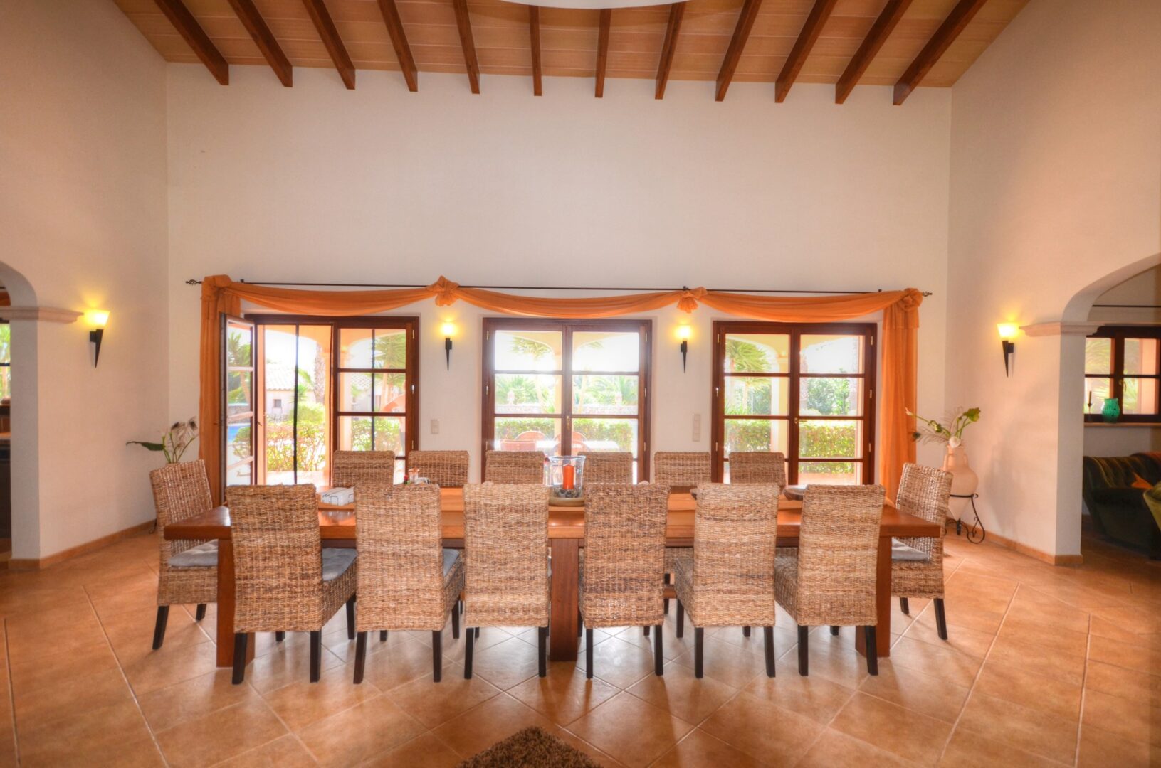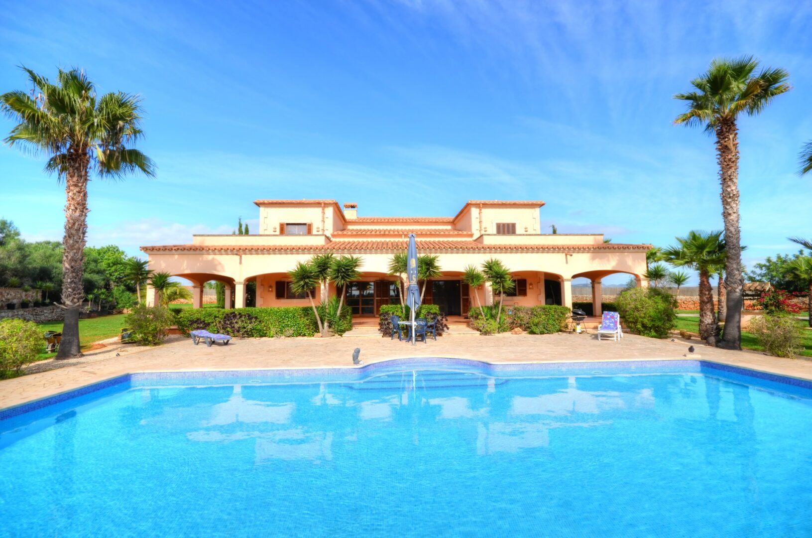 Im Außenbereich befindet sich eine fabelhafte überdachte Terrasse mit herrlichem Blick über den großen Swimmingpool und den Garten mit einer herrlichen Poolterrasse, die dazu einladen, eine fantastische mediterrane Atmosphäre zu genießen.